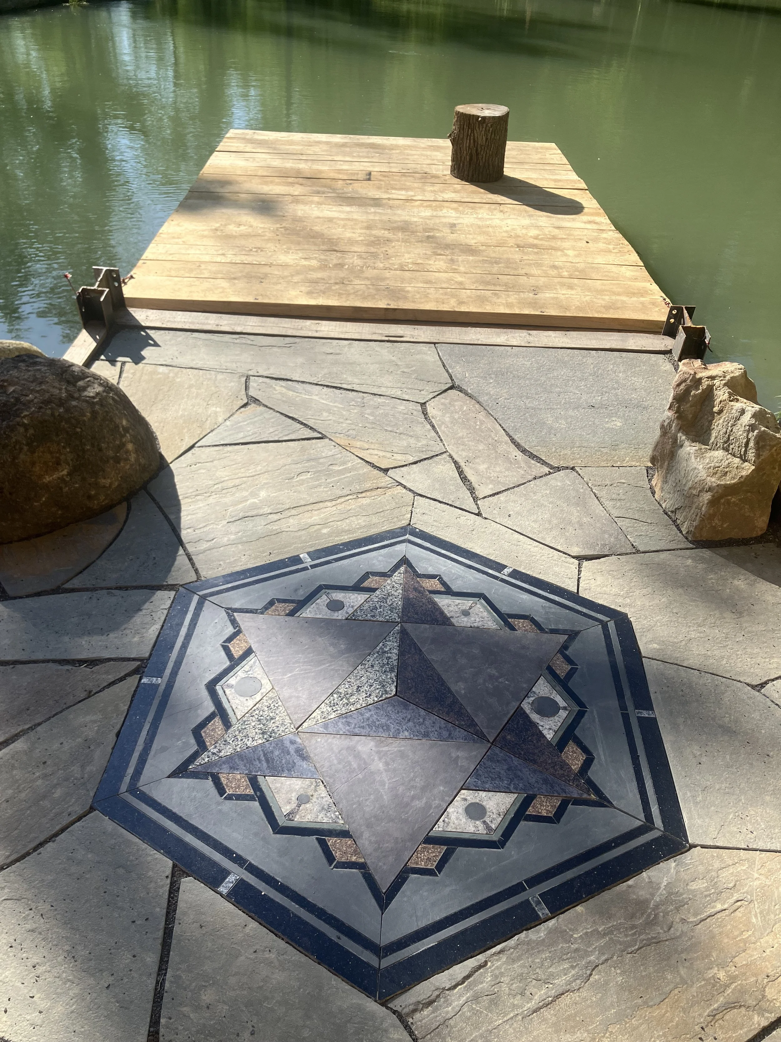 I was commissioned to create this piece as a sacred space in the heart of a very unique country home in Erin, NY. It is made entirely with a variety of repurposed and scrap stone and tile.